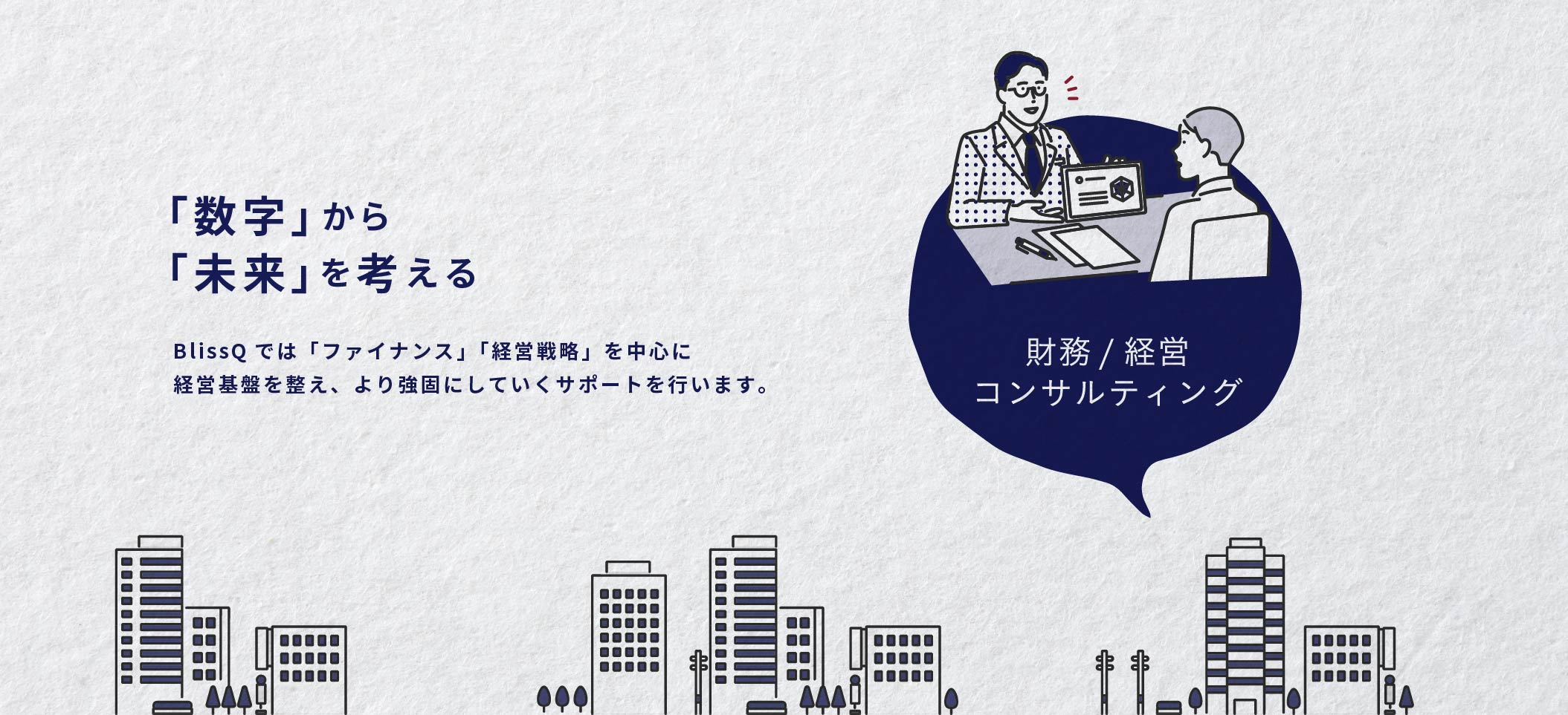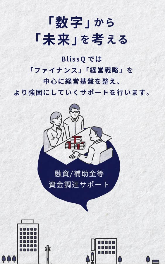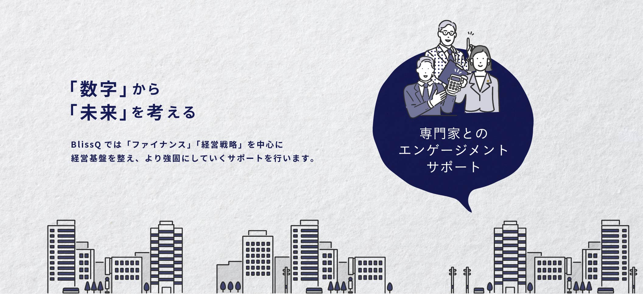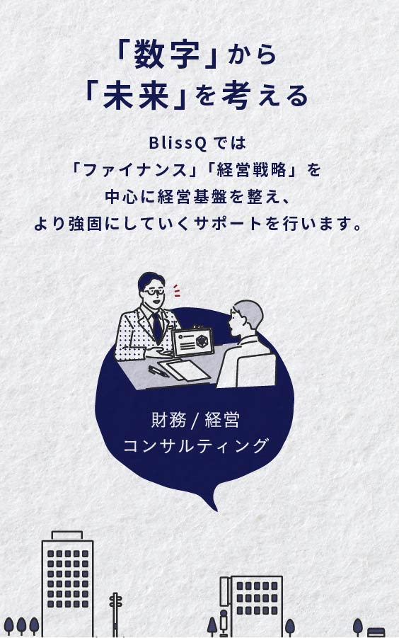 BlissQでは専門的知識を有したスタッフが、企業の幸せ(Bliss)に貢献できるような質の高い(Quality)答えの探究(Quest)を行ってまいります。